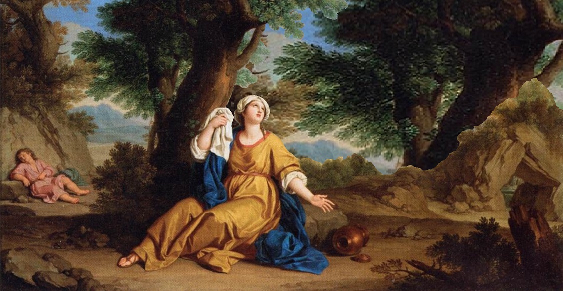 1 Mózes 21.15. Hogy elfogyott a víz a tömlőből, letevé a gyermeket egy bokor alá. 16. És elméne s leűle által ellenébe mintegy nyillövésnyi távolságra; mert azt mondja vala: Ne lássam mikor a gyermek meghal. Leűle tehát által ellenébe, és fölemelé szavát és síra.