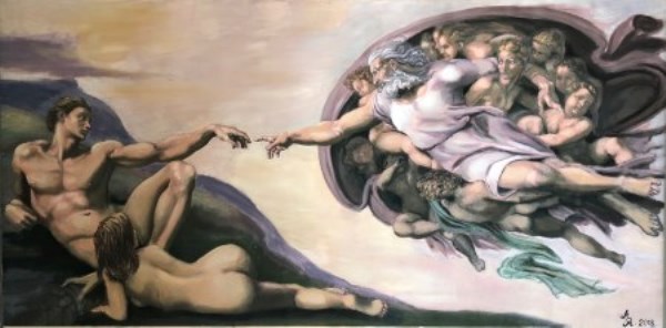 I.Mózes 1.26. És monda Isten: Teremtsünk embert a mi képünkre és hasonlatosságunkra; és uralkodjék a tenger halain, az ég madarain, a barmokon, mind az egész földön, és a földön csúszó-mászó mindenféle állatokon. 27. Teremté tehát az Isten az embert az ő képére, Isten képére teremté őt: férfiúvá és asszonynyá teremté őket.
