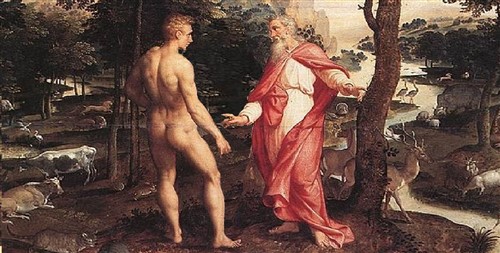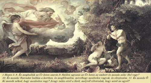 1 Mózes 3. 8. És meghallák az Úr Isten szavát, a ki hűvös alkonyatkor a kertben jár vala; és elrejtőzék az ember és az ő felesége az Úr Isten elől a kert fái között. 9. Szólítá ugyanis az Úr Isten az embert és monda néki: Hol vagy?10. És monda: Szavadat hallám a kertben, és megfélemlém, mivelhogy mezítelen vagyok, és elrejtezém.